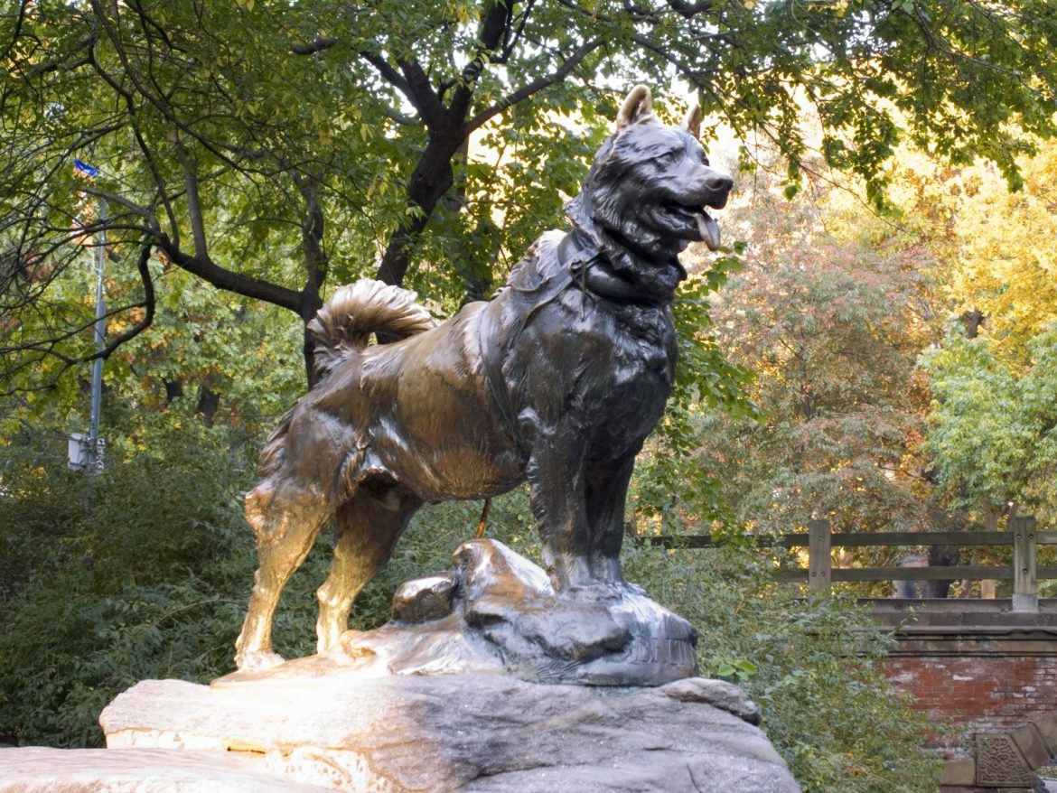 Standing proud in Central Park, New York, this statue honours Balto, a life saving sled dog. In the midst of a diphtheria epidemic in Alaska in 1925, Balto led a team of sled dogs to deliver the only serum that could stop the outbreak. In temperatures as low as -31 °C and near whiteout conditions, Balto led his team and musher almost 800km through the night and saved countless lives with his precious delivery.