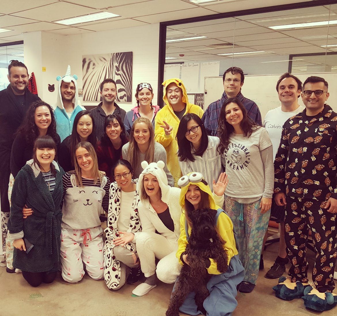 At Mad Paws, we’re lucky to work in a judgment-free environment. Most days, people dress for comfort instead of fashion. However, the game completely changed the day we wore our pyjamas to work. Because we were all dressed in flannels, onesies, and dressing gowns, we were more inclined to let our hair down and relax about our appearances. No-one worried about their outfit, because we were all supposed to look ridiculous.